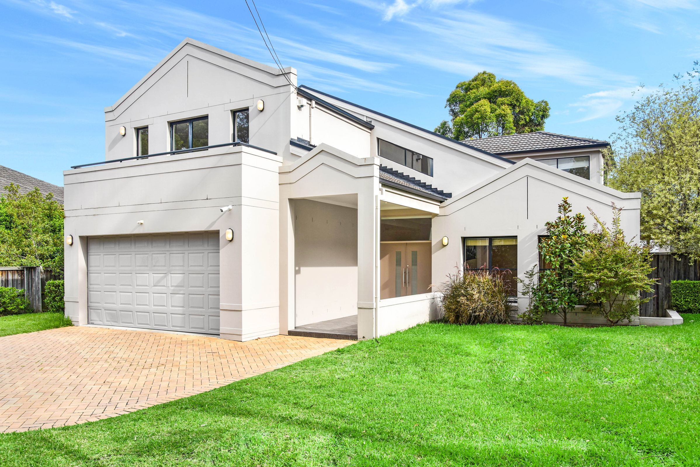striking modern fa?ade, the home welcomes its guests with an elegant